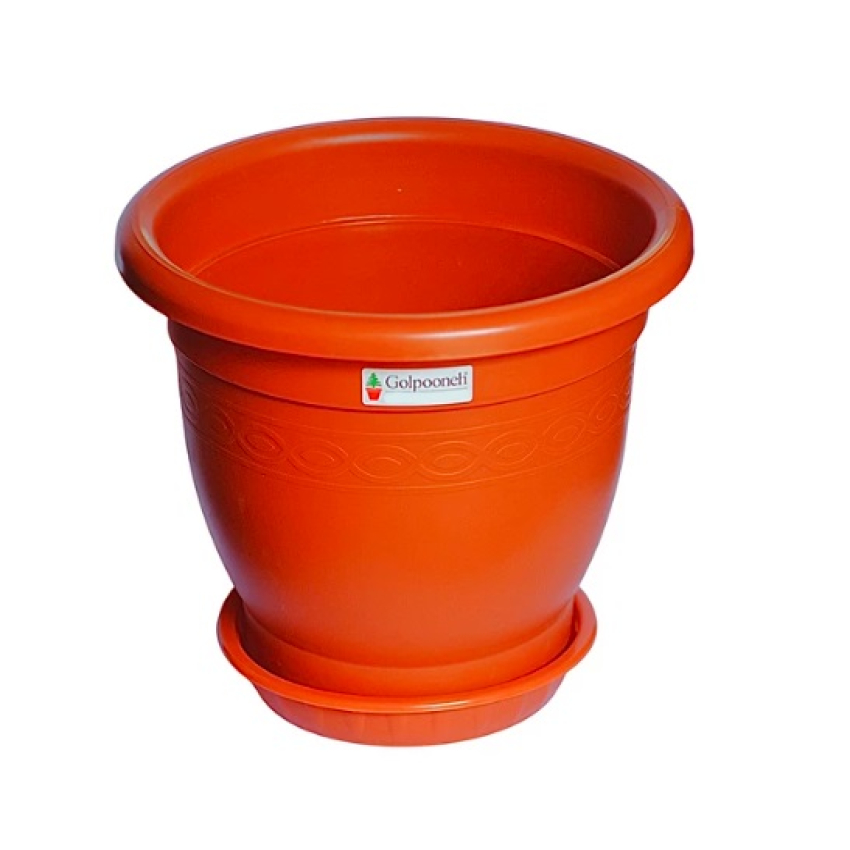 گلدان پلاستیکی گرد دارای زیرگلدانی